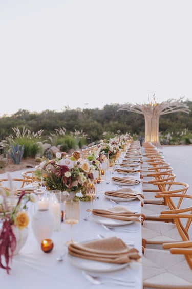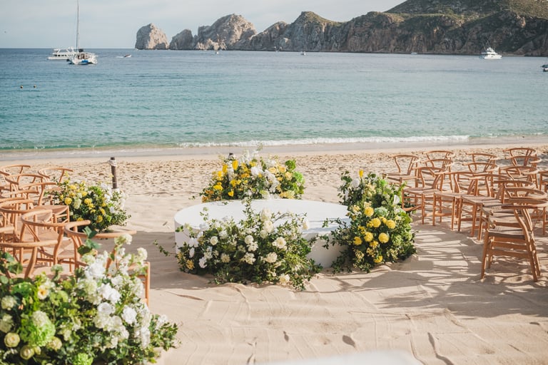 Our weddings are a harmonious fusion of your vision and the destination's local culture and charm. We thoughtfully incorporate local traditions, cuisine, and décor to enhance your celebration, making it a genuine reflection of you and the essence of Los Cabos.